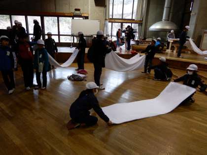 お世話になった宿泊棟を整理・整頓し清掃します。3泊4日の間、様々な思い出を作ってくれた花背山の家の施設を感謝の気持ちを込めてきれいにしました。