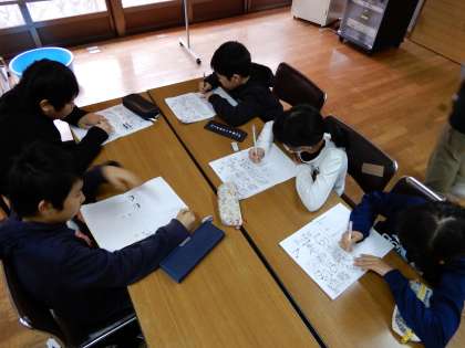 桂東の子ども達は、日ごろから冠句に取り組んでいるので、すぐに思いついてどんどんしおりに書いている子も多かったです。