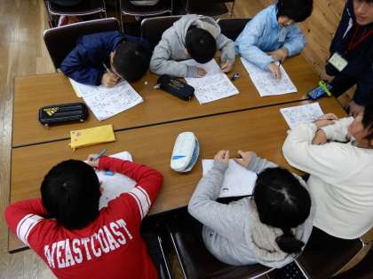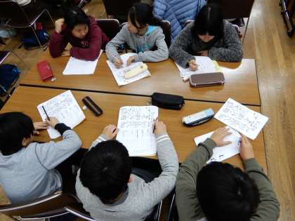 山の家の思い出を俳句に読みました。まず引率の先生方やボランティアの学生さんが発表しました。