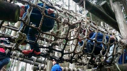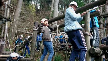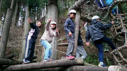 台風21号で倒れた木も残っていますが、山の家の皆さんの努力で復旧した冒険の森です。