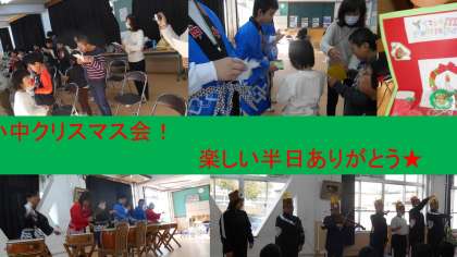 桂川中学校で,小中育成合同クリスマス会がありました。中学校に3つの小学校の友達が集まって,中学生のベルや太鼓の演奏を聴いたり皆で♪サイレントナイトを歌ったりしました。