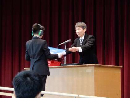 桂東学区にお住まいで,西総合支援学校に6年間通っていた6年生の男の子が14日(木)に卒業式を迎えました。