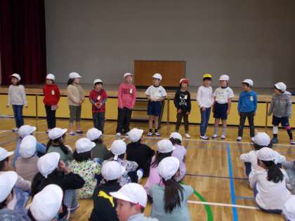 2時間目に体育館で今年度最後の1・2・3月のお誕生日会をしました。学年の中では一番最後に8歳になったお友だちですが,みんなそれぞれ8歳になってがんばりたいことを発表してくれました。