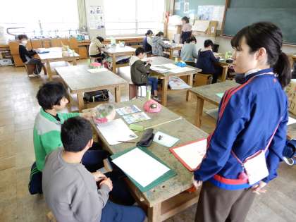 図工室では,造形部の子ども達が作品を展示し,訪れた教職員に説明をしてくれました。どの作品も製作者の思いがあふれる作品ばかりでした。