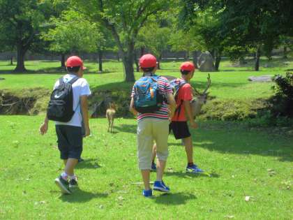 あっちに行っても,こっちに行っても,鹿!!お弁当を取られないよう注意が必要でした(取られた人も…)。鹿せんべいをあげると更に寄ってきて,鹿に大人気でしたね!!