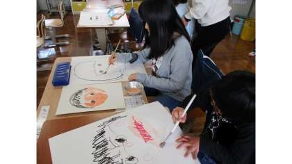 ひとつ大きくなった自分の顔を描きました。とても集中して取り組んでいました。