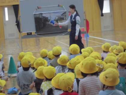 「車は左,人は右。」,「左見て右見てたしかめる。」など,道路を安全に歩くための約束を学びました。
