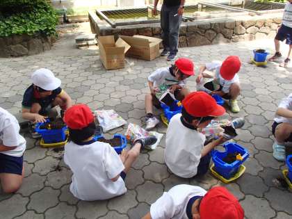 1年生 あさがおのたねを まいたよ