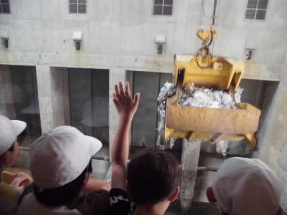午後からは北部クリーンセンターでの見学です。施設ではゴミの処理の仕方だけではなく,地球の未来の環境を守るために大切な「3R」についてのお話を体験を通して聞きました。
