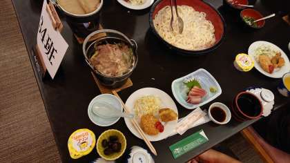 宿に到着し,1日目の夕食です。