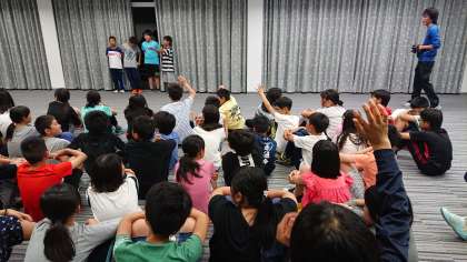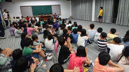 担当のお笑い係の子たちは、この日のために放課後残って練習を重ねてきました。4部構成のお笑いネタには、コントあり、歌あり、アドリブあり、会場は笑いと笑顔でいっぱいになりました。ステレオゲームは、出された問題をみんなが楽しく考えることができました。とても楽しいひと時になりました。