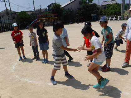 3年生の子どもたちは,想像以上に必死にゲームに取り組みました。ケンケンをしながらジャンケンをして前へ進んでいきます。勝ち負けもありますが,学年みんなと遊べたことが良かったですね。