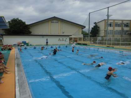 今日は体ならしを思い出した後,自分の泳力を確かめるため,25mを泳ぎました。次の時間からは自分の泳力を伸ばすため,どんどんねらいに挑戦して頑張ってほしいと思います。
