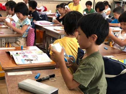 図工「くるくるまわして」の学習です。