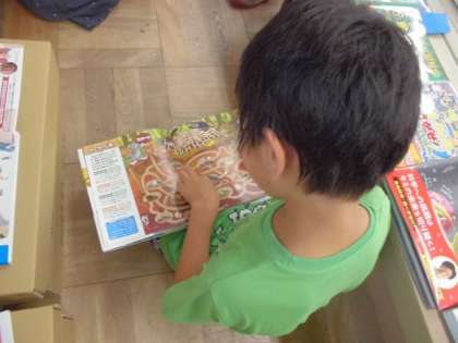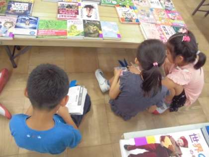 たくさんの本の中で,お気に入りの一冊を見つけました。