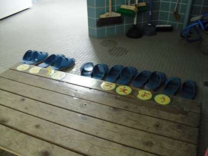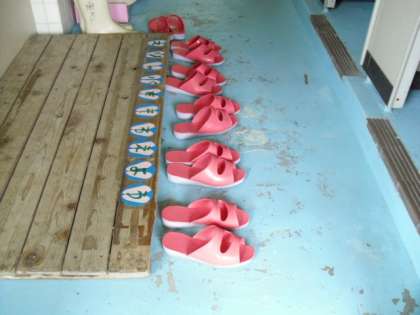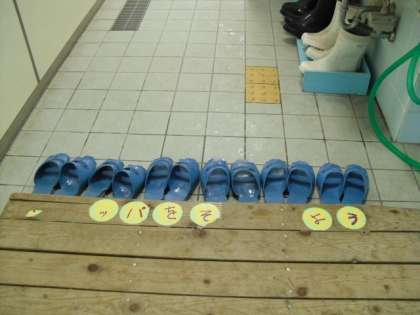 今日の1時間目,校内を回るとトイレのスリッパが全てそろっていました。