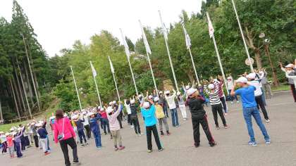 今,子どもたちは,食堂で朝食を食べ終わり,次の活動に向けての準備をしています。今日一日のめあては,「自然」です。花背の自然の親しみながら,活動を行います。子どもたちは,皆元気です。