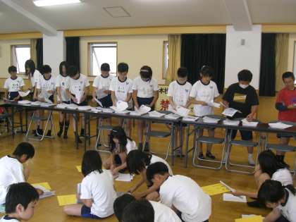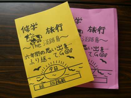 今日は,学年で集まってしおりの帳合をしました。出来上がったしおりに目を通して,みんなで行程や約束について確認をしました。