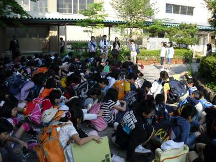 絶好の修学旅行日和です。一人の欠席もなく,一人の遅刻もなく,全員そろって出発しました。