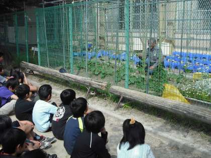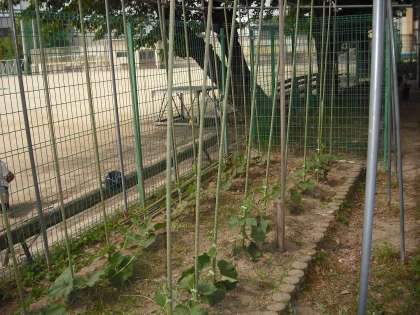 先日植えたひょうたんが,青々と大きな葉を広げています。今日は,朝から,井上さんが支柱を立ててくださいました。ひょうたんは,水をやらなくても,地中深く水分をもとめて根をぐんぐんはっていくそうです。このひょうたんの生命力に,子どもたちは,改めてびっくりしていました。