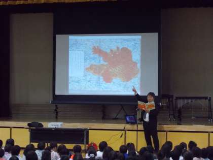 今日は,人権朝会がありました。校長先生が人権についてのお話と「しまひき鬼」という絵本の読み聞かせをされました。