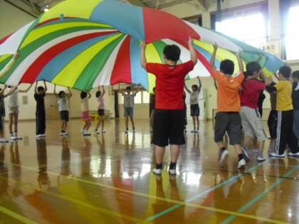 先日5組さんと交流授業をしました。バールーン遊びやなかまつくりゲームなどを楽しみました。