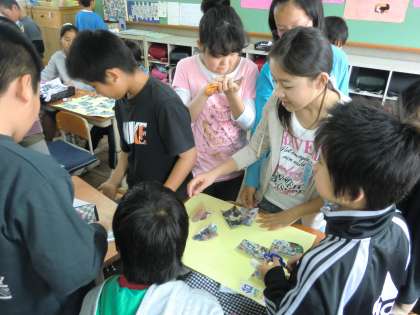 子どもたちは、修学旅行を振り返って、思い出を冠句にしたり写真にコメントを書いたりしました。