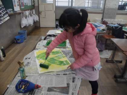 図工 版画「たのしくうつして」〜ローラーをかけたよ〜