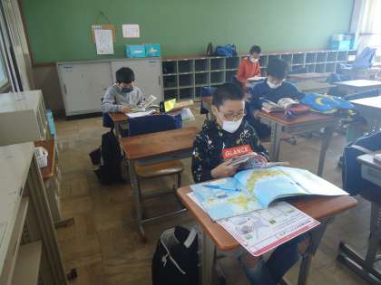 さて息抜きに学校の様子をいくつか紹介します。学校は今,お家の事情で,特例預かりとして来ている友達もいます。一人で自主学習をしてがんばっています。学校の桜もいつの間にか緑になり,初夏の様子になってきました。身近なところから学習のはてなにつながることもあります。休校期間だからこそ,できることを見つけて学習してみてくださいね。