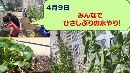 5組の畑では,イチゴとえんどう豆が育っています。