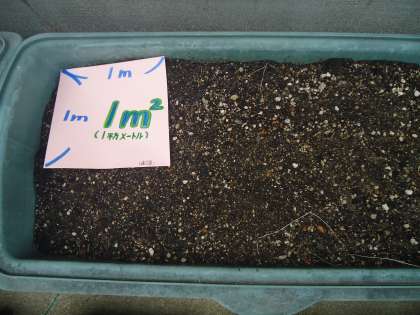 さてせっかくなので,ここで1つ算数の学習をしてみましょう。4年生では,プランターの広さを求める時に面積という勉強をしました。どうやったら求められるか,覚えていますか。【たて×横=(平方〜)】
