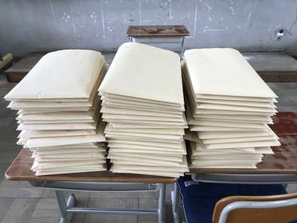 今日は、明日に くばる お手がみや 学しゅうの プリントを、