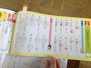 今回は算数は復習プリント,国語は新しい漢字と「きつつきの商売」の音読です。