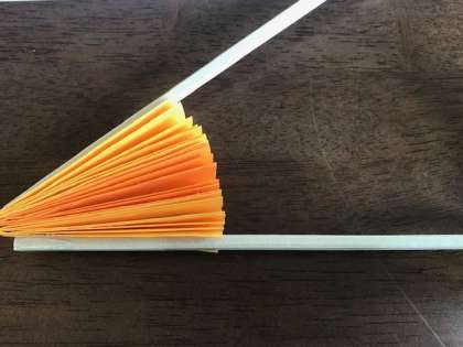 次に,できた3つのじゃばらを,半分に折り,のりではり合わせます。