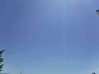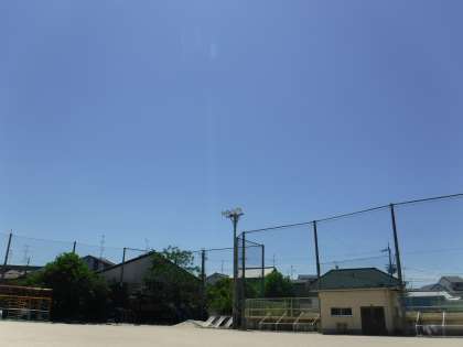 午前中,学校から見た空は雲がほとんどない青い空で,風がいつもより強く感じました。