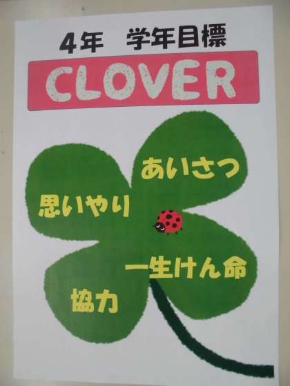 4年生の学年目標は,「CLOVER」です。