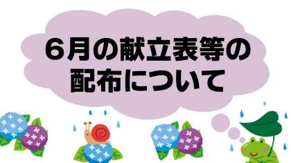 「6月分給食献立表」「献立に関するお知らせ」を同封しております。