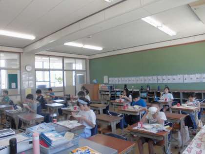 やっと待ちに待っていた給食が始まりました。今日は子どもたちの大好きな平天の煮物もあり,みんな嬉しそうでしたね。今までと同じようにグループになって食べることはできませんが,みんなルールや決まりを守って食べていました。