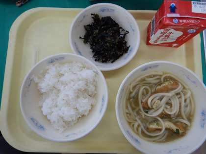 ☆1年生は準備から片づけまではじめての給食をとても頑張っていました。給食のお勉強も一生懸命できましたね。