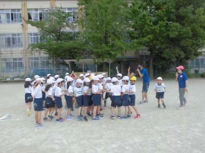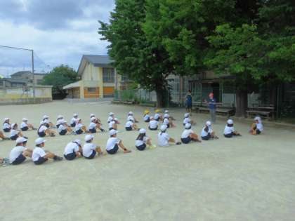 クラスごとに,1列に並んだり,2列に並んだりしました。