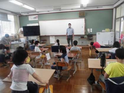 5時間目に,外国語の学習でカンピーシ先生が5組に来てくれました。