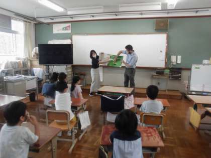 「A Beautiful Butterfly」の絵本の読み聞かせをしてもらい,色の学習をしました。