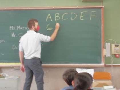 アルファベットの練習や自己紹介の仕方を学びました。