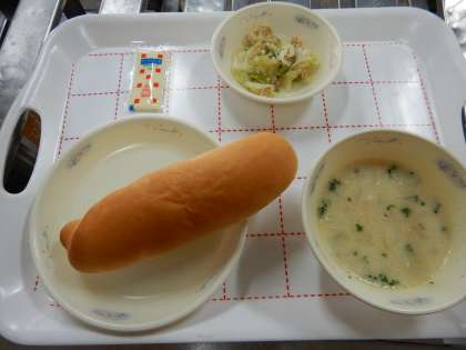 ☆チャウダーのルーは調理室で小麦粉を炒めて手作りしました。チャウダーは,残食が少なく,最後まで食べられた人がたくさんいましたね。
