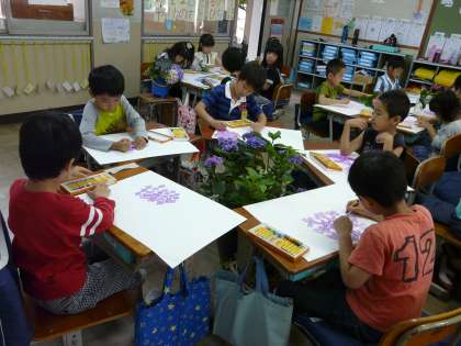 あじさいを持ってきていただいたお家の方に感謝!!素敵な絵になりそうです。