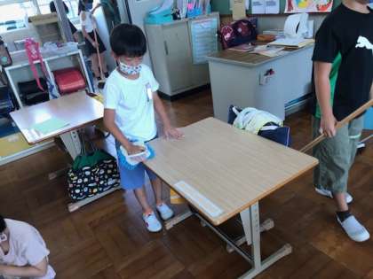 2時間目は大掃除です。終業式の日に掃除をした教室も,今日は砂やほこりがあり,みんなとっても頑張って掃除をしました。暑い中でしたが教室がきれいになりましたね。