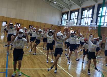 4年生は体育の学習で,鳴子おどりをしています。グループごとにふりつけを相談し,タイミングがあうように何度も音楽に合わせて練習をしています。少しずつリズムよくおどれるようになってきました。体育授業参観では,4年生みんなで元気いっぱいにおどる姿を観ていただきたいと思っています。