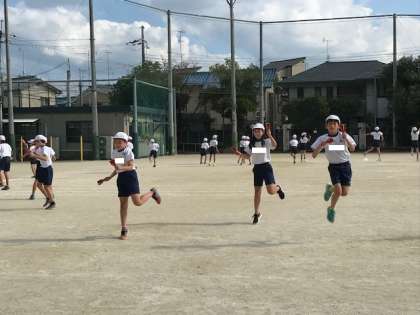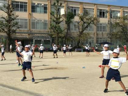 4年生は小型ハードル走と鳴子踊りをします。