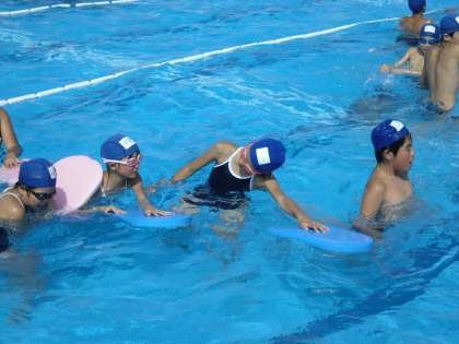 水泳学習というと,学年全員で一人の先生がハンドマイクを握って,一斉指導でみんなが同じ学習を進めていく授業風景がおなじみかもしれません。一斉または全体での指導や学習が悪いわけではありませんし,そのほうが効果的な学習場面もあるのですが,今年の6年生はペアやグループでの教え合いを効果的に学習の中にいかしています。