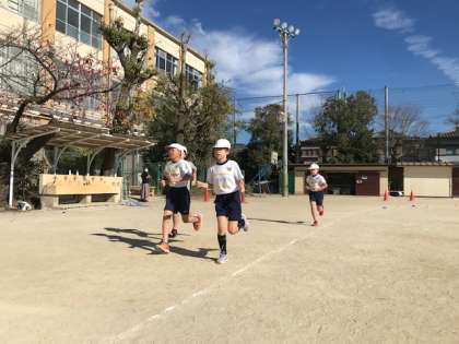 ゆっくりペース走は,5分間を自分に合ったペースで走り切りました。一生懸命に力いっぱい走る姿がとてもかっこよかったです!
